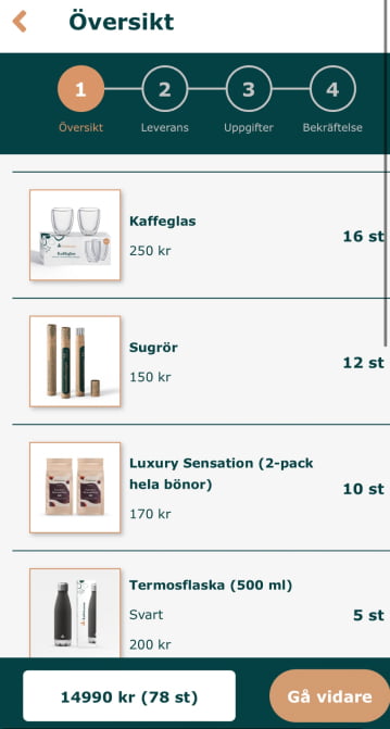 4. I nästa steg får ni en översikt på er beställning. Ser allt ut som det ska kan ni gå vidare med att klicka på ”Gå vidare”.